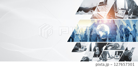 様々なビジネスシーンのコラージュ バナー・広告向け横長ビジュアル