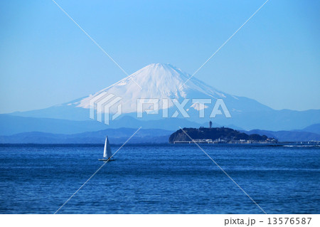 湘南の海と江の島と富士山