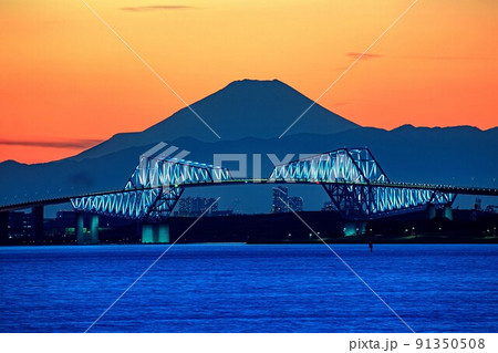 舞浜から望む富士山と東京ゲートブリッジ 千葉県浦安市