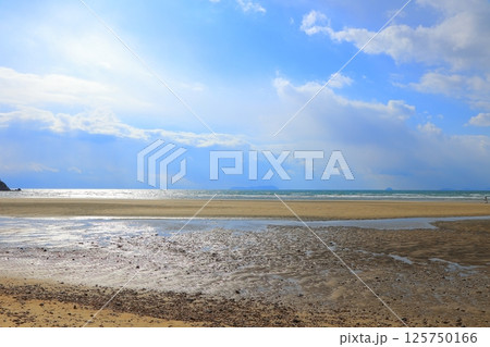 掛川市にある青空に映える国安海岸と海と空の風景(静岡県)