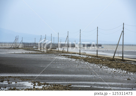 海の中へひたすらつづく道から観える風景 海苔養殖風景 長部田海床路(ながべたかいしょうろ)宇土市住吉