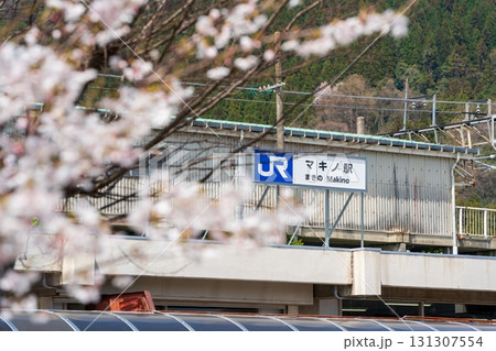 春の満開の桜とJR西日本 マキノ駅