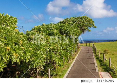 沖繩萬座毛海岸邊的翠綠植被景觀