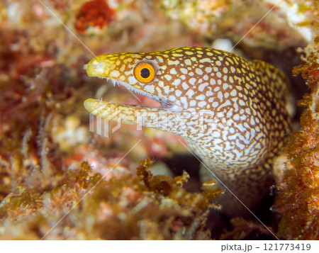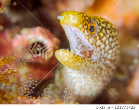 美しいワカウツボ(ウツボ科)の幼魚。 静岡県伊豆半島賀茂郡南伊豆町中木ヒリゾ浜2024年