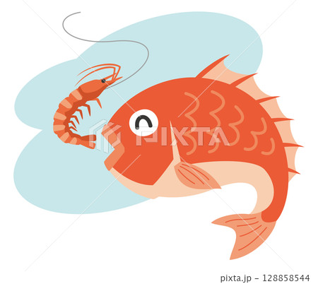 蝦(エビ)で鯛(タイ)を釣るのイラスト