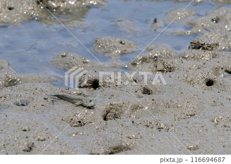 宇土の住吉海岸公園で海岸探検で観えるムツゴロウとカニ 長部田海床路(ながべたかいしょうろ)宇土市住吉