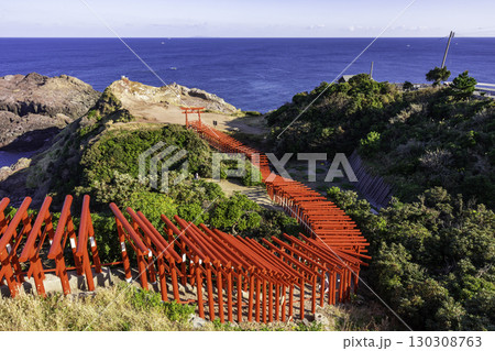 青い日本海を背景に赤い鳥居が連なる元乃隅神社(元乃隅稲成神社) 山口県長門市
