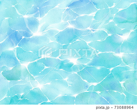 煌めく透きとおった水面の抽象イメージ。水彩イラスト。背景、壁紙。(光付き)