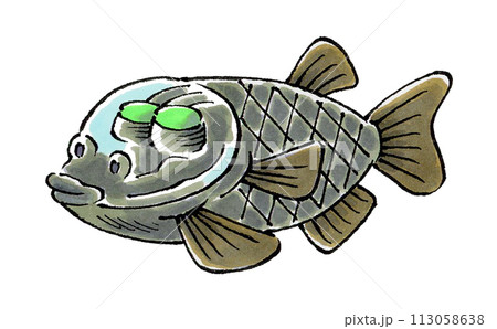 岩礁帯に生息する美味釣魚、大きな目をした黒メバルの魚体をイラスト風にレタッチ加工した切り抜き画像。