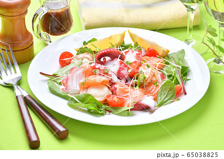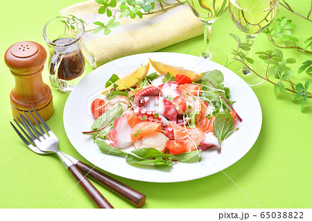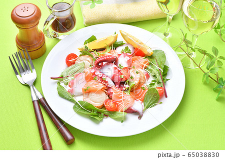 シーフードサラダ ヘルシーサラダ 海鮮と野菜 健康料理 イメージ素材