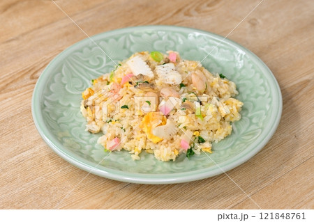 海鮮チャーハン、シーフードチャーハン、シーフード炒飯、シーフードミックス使用。