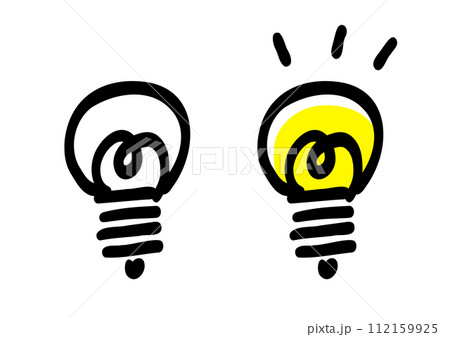 手描き風の光る電球のイラスト 点灯と消灯のセット オンとオフ