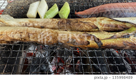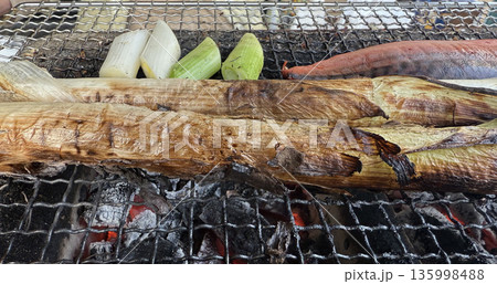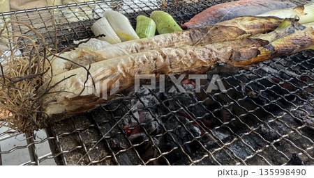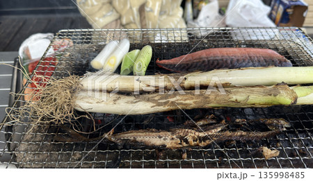 日本料理 七輪で炭焼き 網焼きバーベキューねぎ焼き