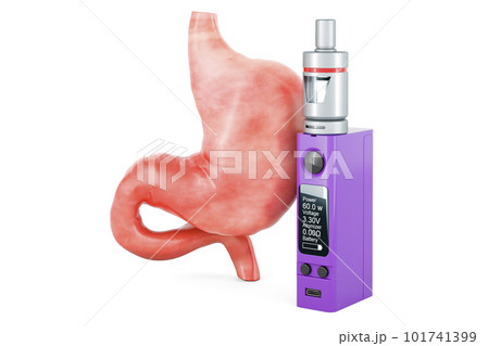 Vape Box Mod e-cigarette with human stomach, 3D rendering