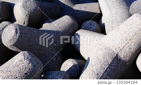 幾何学的に積み上げられた巨大な消波ブロック