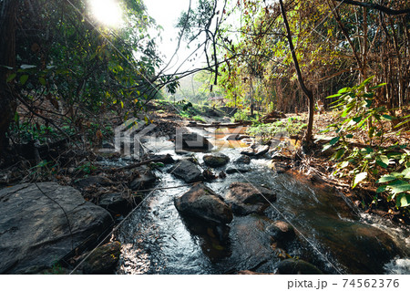 A stream of clear water in the tropical evening