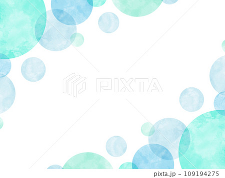 水玉模様の水彩フレーム 水色