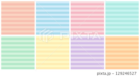パステルカラーの 横ストライプ シームレスパターンセット 横縞 ボーダー