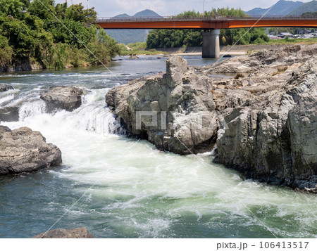 闘竜灘(兵庫県加東市内)の加古川の流れ。