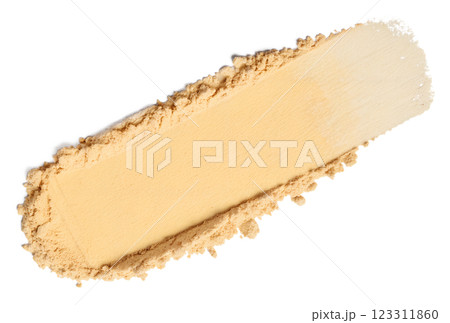 Light yellow eye shadow swatch isolated on transparent background, makeup product, cosmetic palette, beauty theme