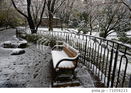 雪の港北ニュータウン・鴨池公園の風景