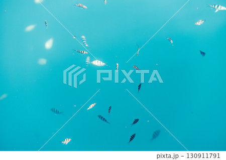 美しいホウライヒメジ(ヒメジ科)、ニザダイ(ニザダイ科)他の群れ。南伊豆町中木ヒリゾ浜2024年