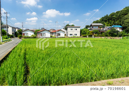 調布市かに山近くの水田ののどかな眺め 東京都調布市深大寺南町