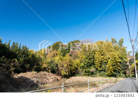 調布の田園風景 かに山キャンプ場近く 冬晴れの青空と紅葉 東京都調布市深大寺南町2丁目