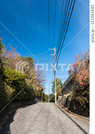 夏の青空と坂道 かに山近く 東京都調布市深大寺南町