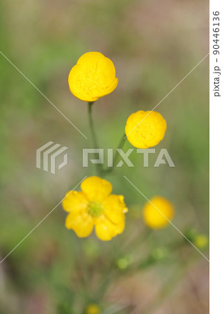 Close-up image of a Meadow Buttercup Ranunculus acris. Yellow flower in macro