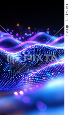 Abstract purple stream of light with digital textures, creating a dynamic energy effect in a dark space