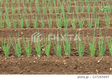 ねぎ畑に生育するねぎ、深谷名物、深谷ネギ