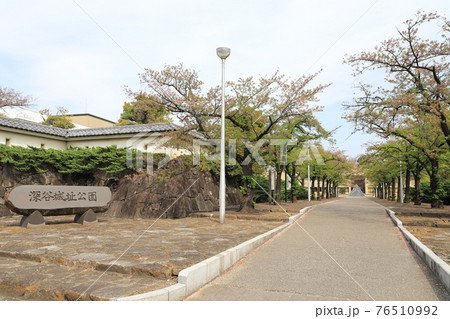 深谷城址公園 広場から見た桜並木 埼玉県深谷市