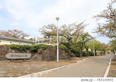 深谷城址公園 正面入り口と桜並木 埼玉県深谷市