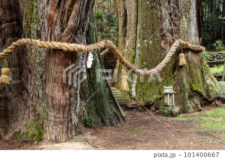 御神木のしめ縄 杉の大スギ 特別天然記念物 高知県