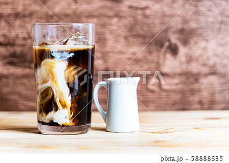 ガラスのカップに牛乳とコーヒーを入れてつくるカフェオレ