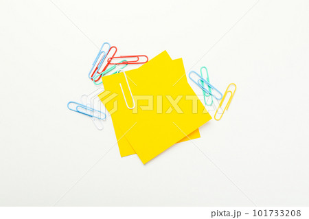 Concept of different office accessories - paper with clip