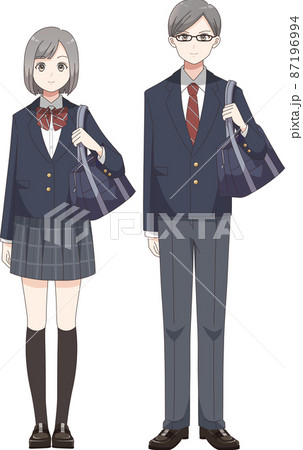 全身立ちポーズ 男女の学生 ブレザー服チェック柄