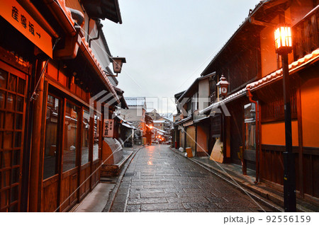 1月の夜明けに京都市東山の産寧坂へと歩く