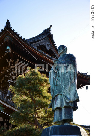 嵯峨清涼寺の山門と法然像