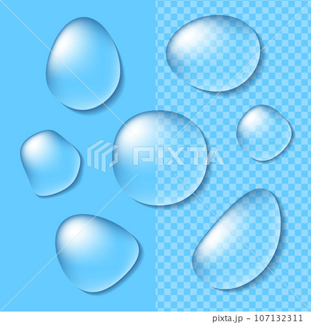水滴をイメージした透明な素材のバリエーション(背景が透けて見える)ベクターイラストセット