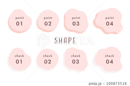 くすみカラーの流体シェイプ素材8セット ナンバー ピンク