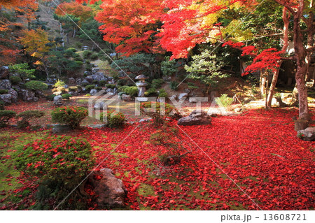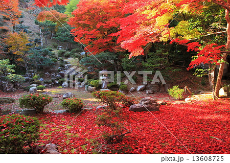 滋賀県 米原市 清瀧寺徳源院の紅葉のお庭 赤い紅葉の葉