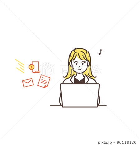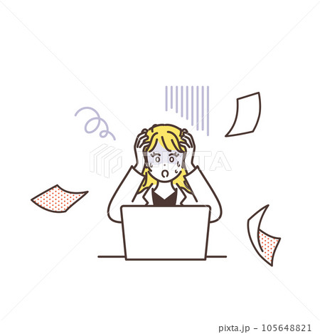 仕事量が多すぎて困っている女性のイメージイラスト素材 業務効率化 生産性向上