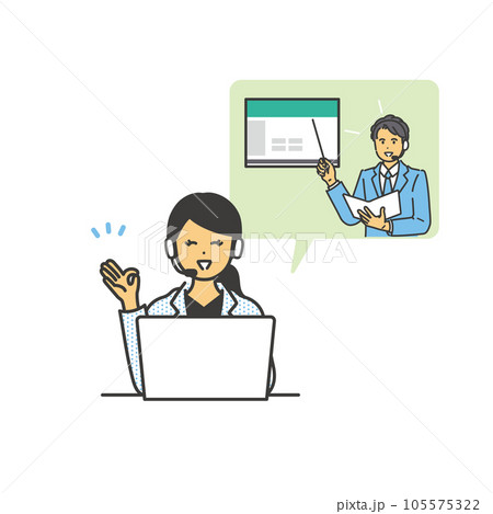 オンラインで講習を受けるアジア人女性のイメージイラスト素材