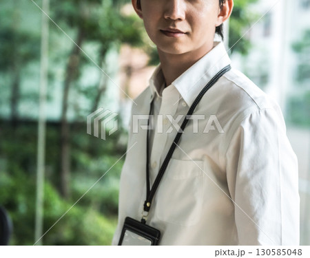 腰が低いビジネスマン 名刺交換 胸の高さ