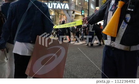 渋谷ハロウィン2023 横断歩道を規制線で止める警察官