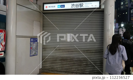 渋谷ハロウィンで降ろされた地下鉄のシャッター