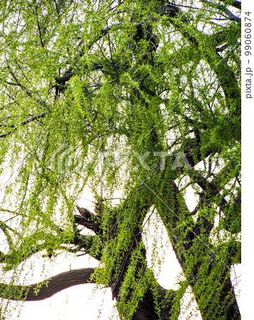 写真 春風に揺れる柳の枝 そよぐ風と柳の枝 石川啄木の詠んだ短歌の柳