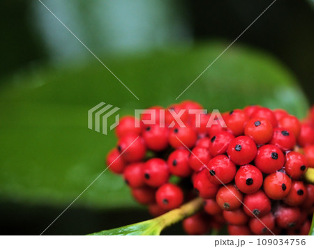 11月に色付いた赤いタラヨウ(多羅葉)の実
